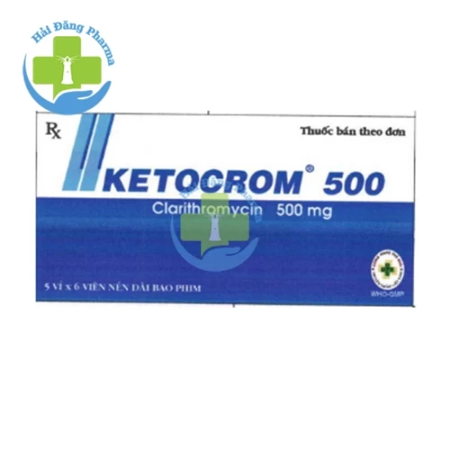 - Ketocrom 500 là thuốc kháng sinh do OPV sản xuất, với thành phần chính là Clarithromycin 500mg. Thuốc thuộc nhóm macrolid, hoạt động bằng cách ngăn chặn sự phát triển của vi khuẩn, từ đó giúp điều trị hiệu quả các bệnh nhiễm khuẩn do vi khuẩn nhạy cảm gây ra. Ketocrom 500 được sử dụng trong điều trị các bệnh nhiễm trùng đường hô hấp, viêm họng, viêm phổi, và các nhiễm trùng da. Thuốc cũng có thể được chỉ định để điều trị các bệnh nhiễm khuẩn do Helicobacter pylori gây ra, một nguyên nhân phổ biến dẫn đến viêm loét dạ dày. Ketocrom 500 phù hợp cho cả người lớn và trẻ em, giúp cải thiện sức khỏe và giảm thiểu sự phát triển của nhiễm trùng.